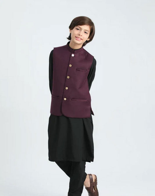 Brown Shalwar Kameez and Waistcoat- 3PC Set(KID)